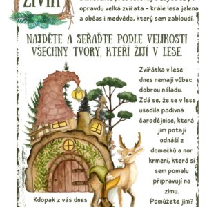- Závěrečná stezka hry (8 karet s úkoly, karta Strážce lesního pokladu, 1 A4 s přílohami k úkolu se zajícem)